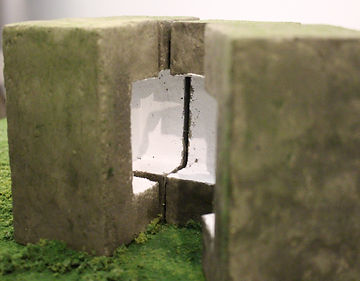 Painted concrete, artificial grass, wood board
